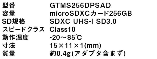 ![]() GTMS256DPSAD(micrSDXC 256GB) 価格:17,380円(税込) |