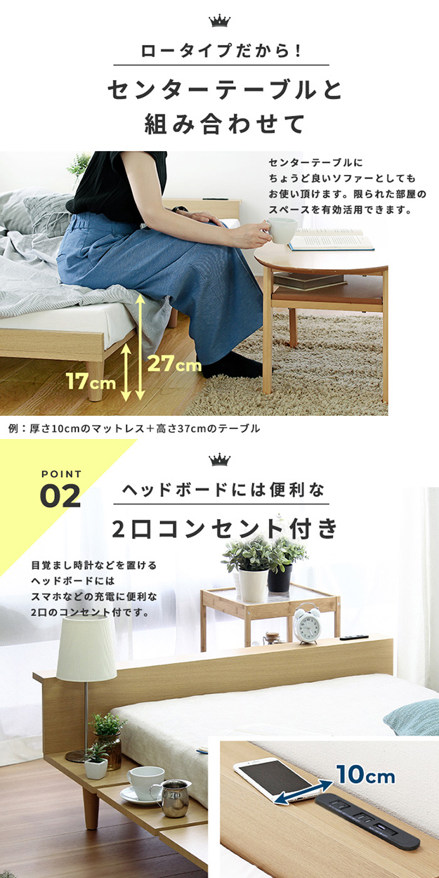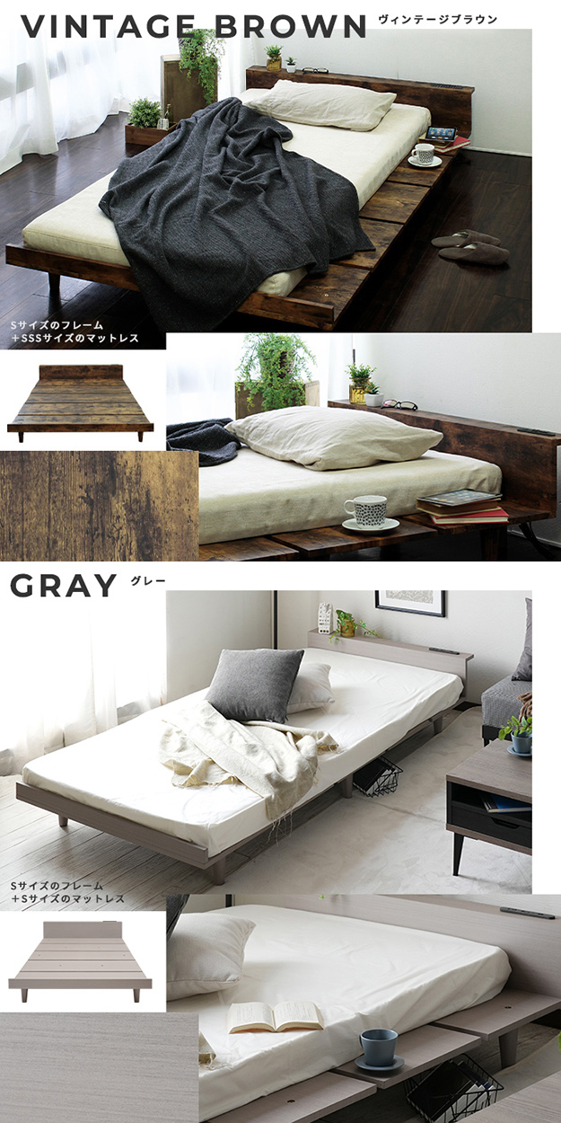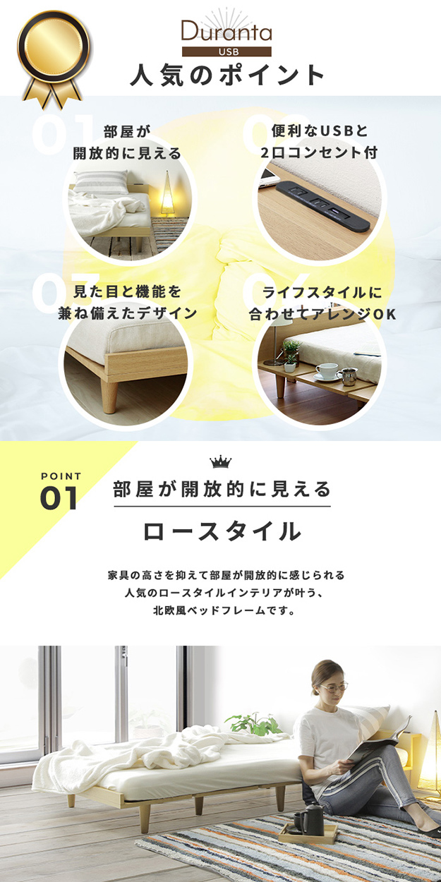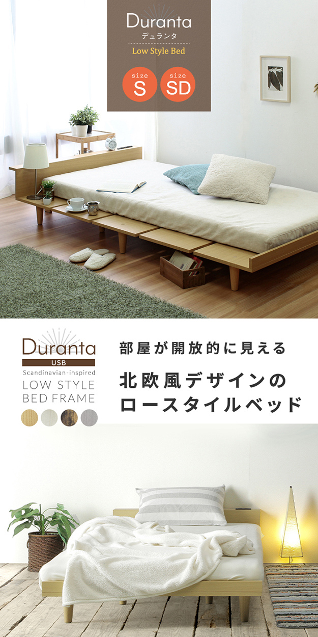 寝具 おしゃれ Duranta デュランタ グレーマットレスセット SD ベッド コンセント2口付き USBポート付き 棚付き 通気性 快適 北欧風 シンプル ナチュラル 新生活