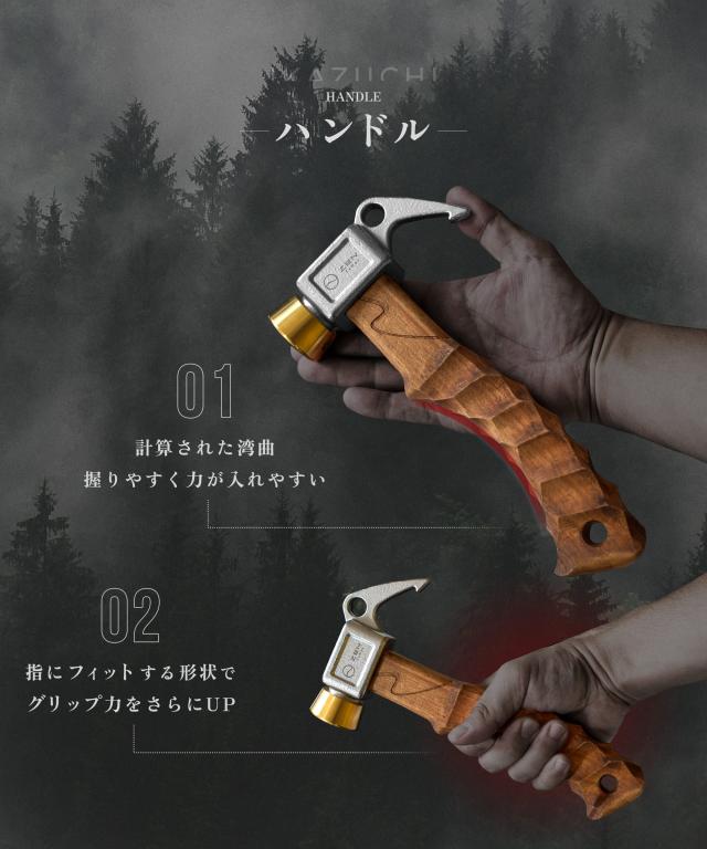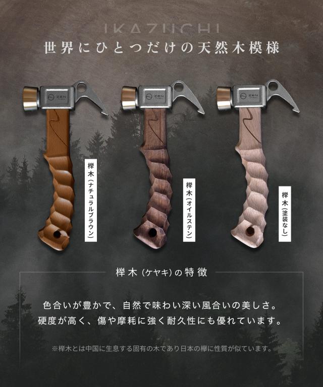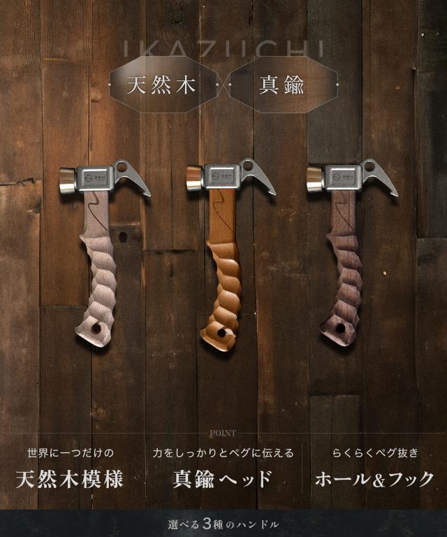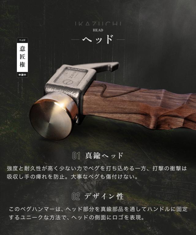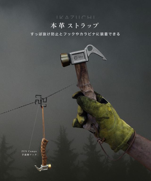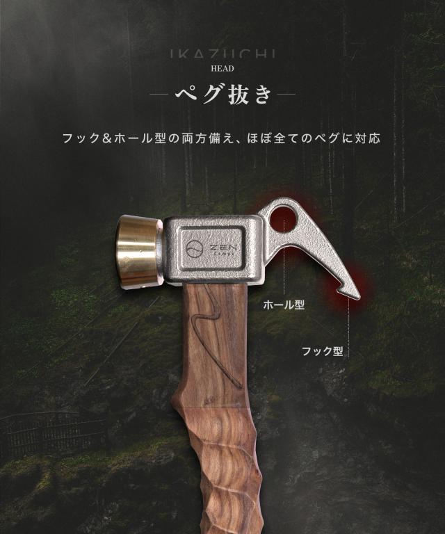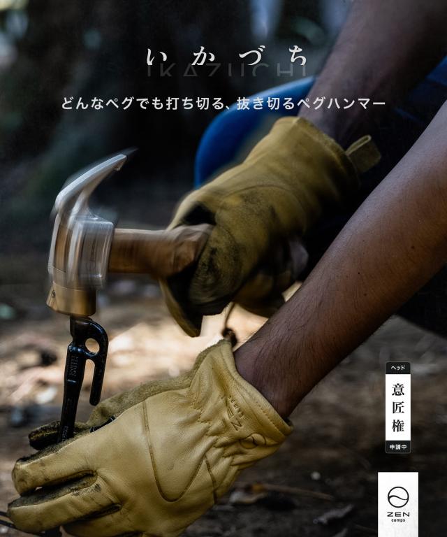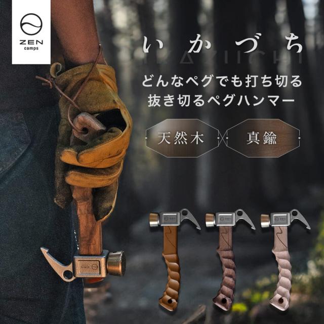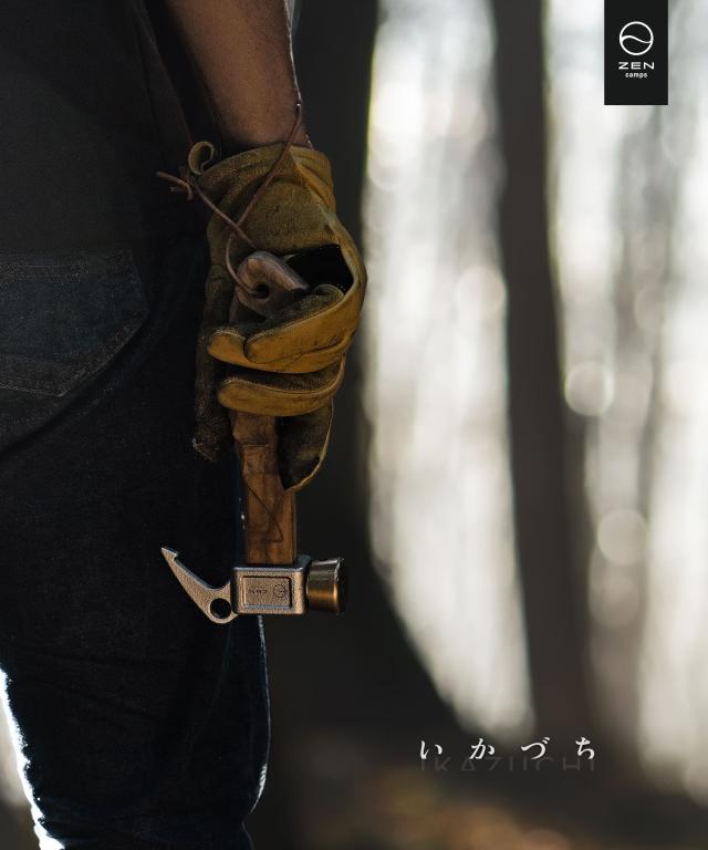 ZEN Campsペグハンマー 「IKAZUCHI」 手にフィットする名栗加工のハンドルと真鍮とステンレスの金属ヘッドを組み合わせることで、ペグをしっかりと打ち込めるショートハンマーです。