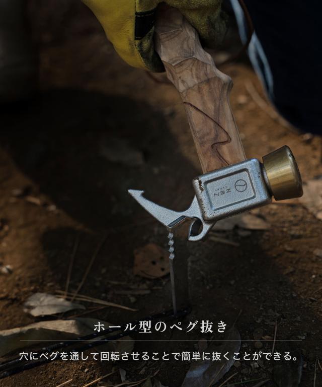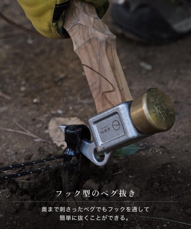 ZEN Camps ペグハンマー ケヤキ ショートハンマー ショート 軽量 小型 コンパクト 木製ハンドル 名栗加工 真鍮ヘッド キャンプ用品 キャンプ