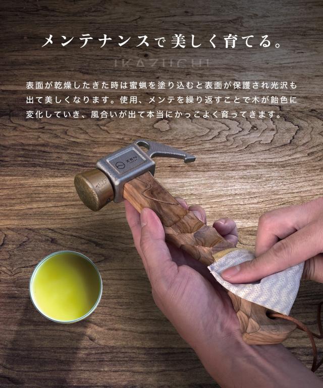 【メンテナンス】真鍮の打撃部が破損した場合は交換可能です。木製のハンドルは表面が乾いて来た場合、蜜蝋等のワックスを塗り込んでください。光沢が出て表面が保護されます。経年により風合いの変化が楽しめます。