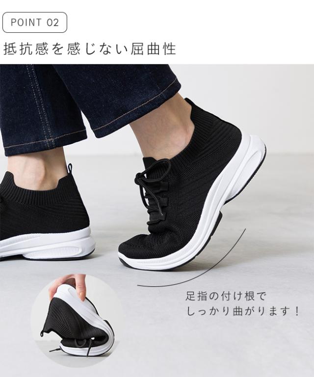 スニーカー 交換無料イベント スリッポン ウォーキングシューズ ランニングシューズ コンフォートシューズ レディース 外反母趾 幅広 甲高 柔らかい ニット 黒 ブラック 軽量 紐なし 厚底 ジム アウトドア 送料無料 一部12月末日頃発送予定