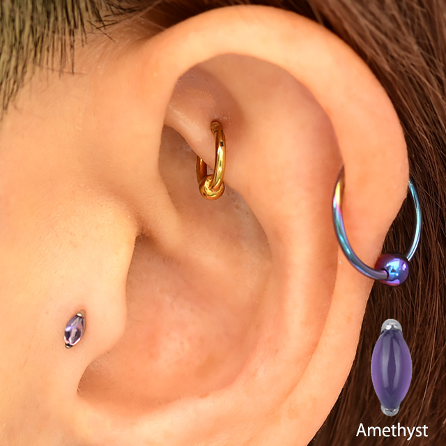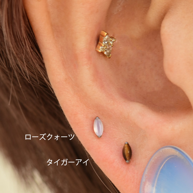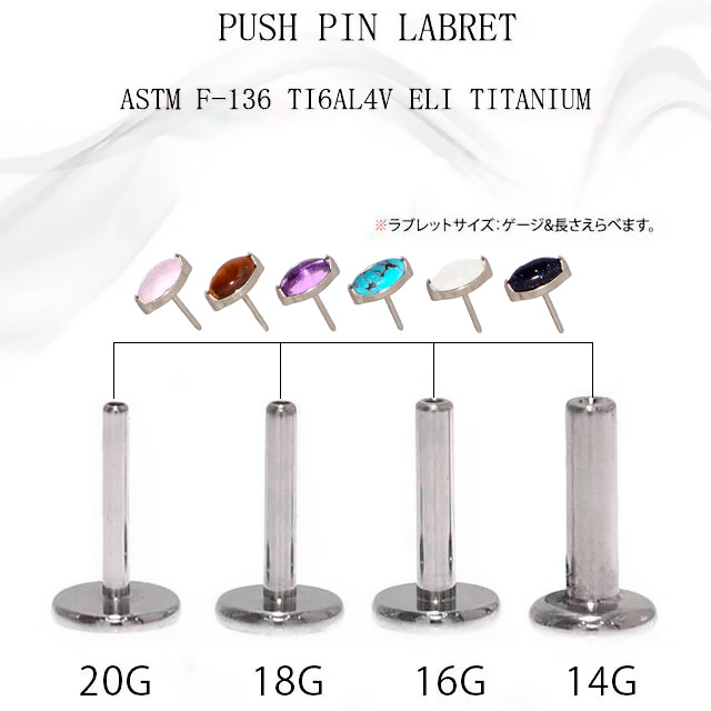 プッシュピアス 20G 18G 16G 14G 天然石ピアス 金属アレルギー対応 チタンピアス ラブレットスタッド ボディピアス ロブ 軟骨ピアス ヘリックス トラガス