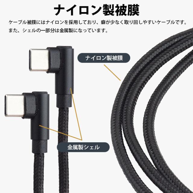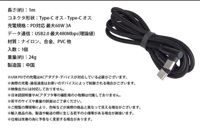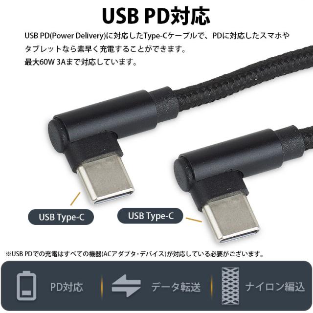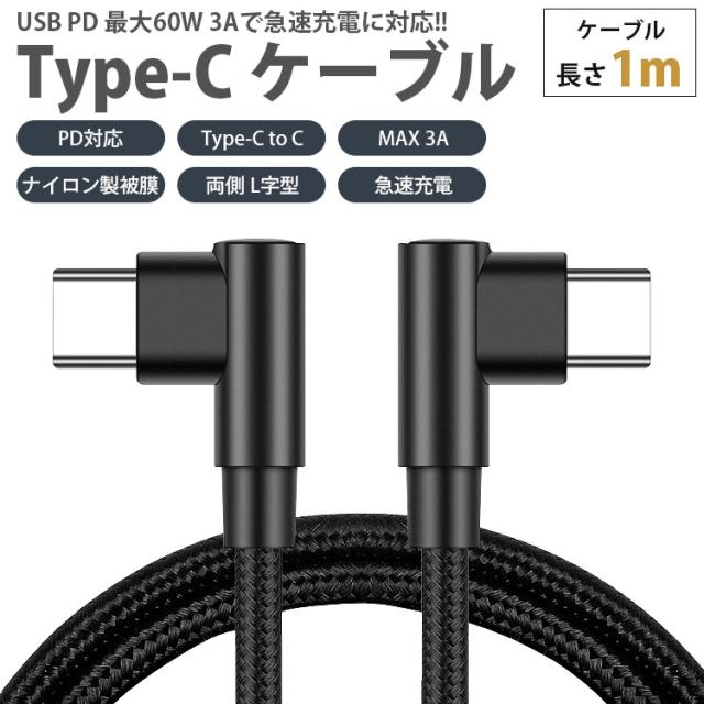 USB Type-C ケーブル 1m 両側 L字型 PD対応 Type-C to C MAX 3A USB C タイプ C 急速充電 データ転送 スマートフォン タブレット PR-UTC08-L1【メール便 送料無料】