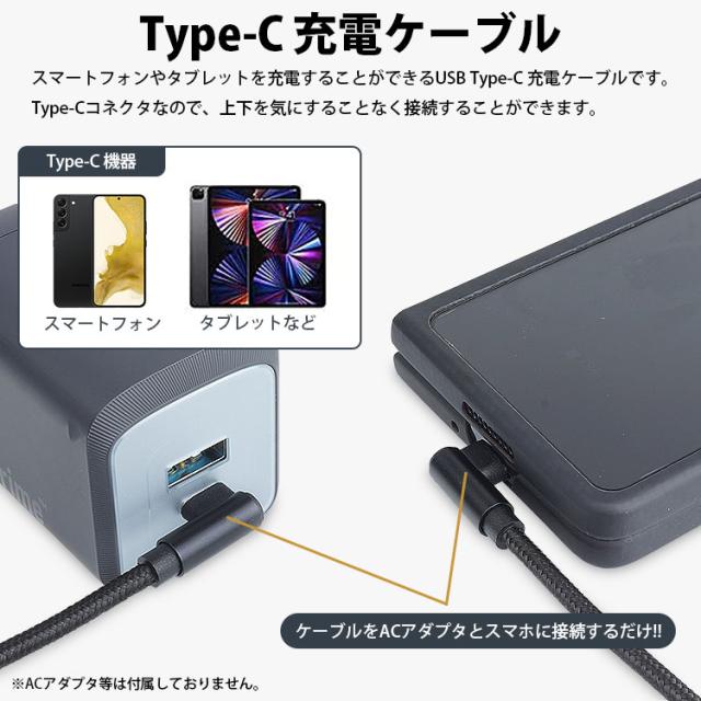 スマートフォンやタブレットを充電することができるUSB Type-C 充電ケーブルです。