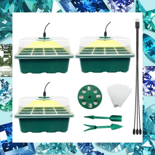 育苗ポット植物育成ライト付き 育苗トレイ 育苗箱 12穴 3個セット 種子トレイ 発芽?育苗セット 種まきハウス 苗箱 種まき器 育苗ボックス