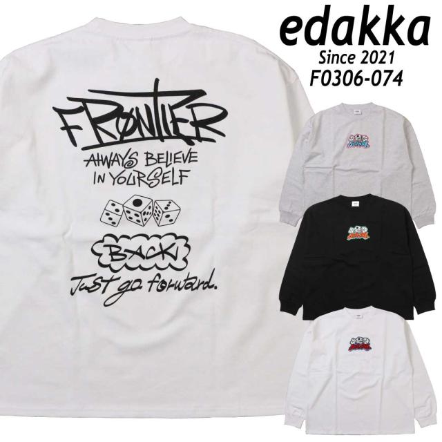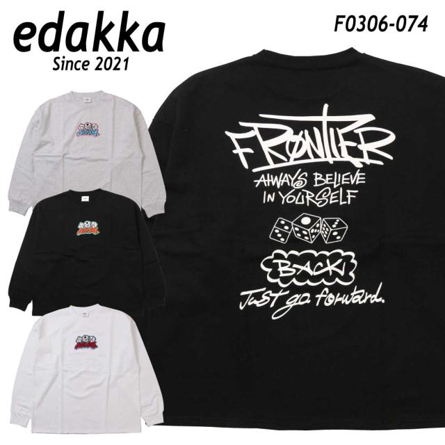 edakka 長袖 Tシャツ クルーネック ヘビーウェイト 刺繍 入り 長袖Tシャツ ロンT 綿100% ダイス F0306-074 メンズ EDAKKA