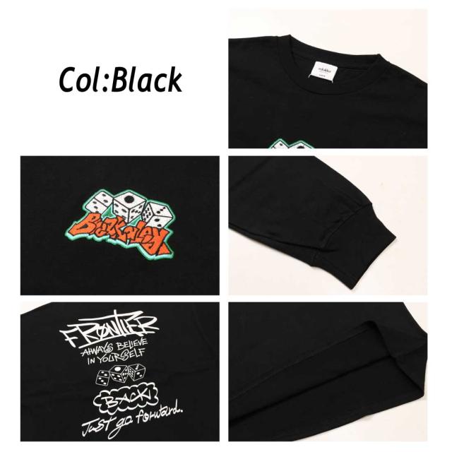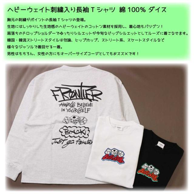 ヘビーウェイト刺繍入り長袖Tシャツ ロンT 綿100% ダイス