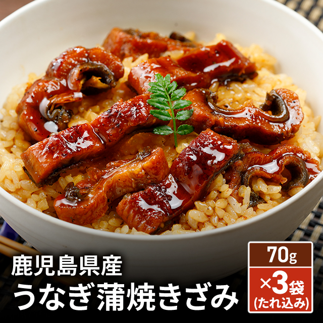 国産 鹿児島県産 うなぎ蒲焼きざみ 70g(たれ込み)×3袋 ウナギ 鰻 人気 定番 冷凍