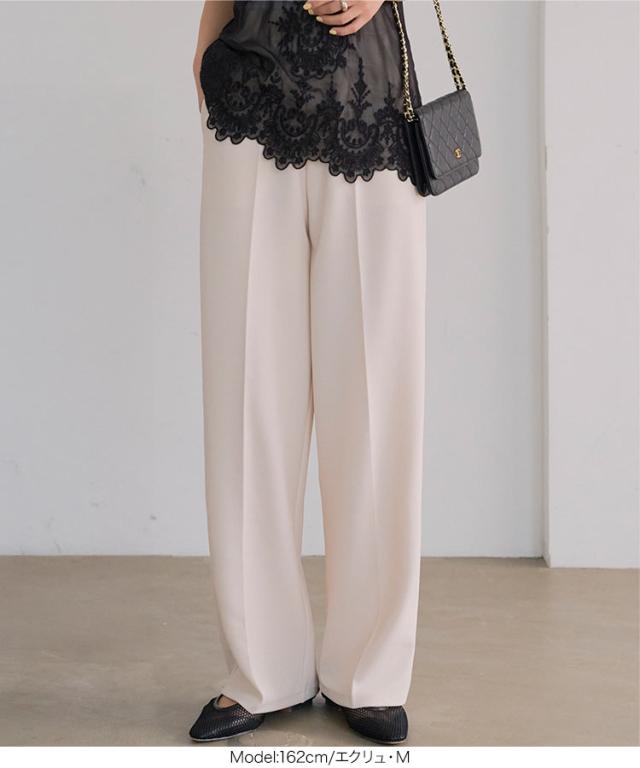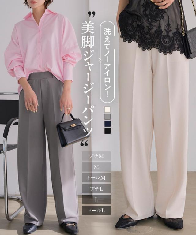 ※【代金引換便】以外のお支払いにて1点までのご注文は【メ-ル便】発送自宅で洗えて、1日中着用してもシワが気にならない。ストレッチの効いた素材でストレスフリーな穿き心地も叶える、いいとこ取りタックワイドパンツが登場。下半身のラインをカモフラージュするセンタープレス。ゆとりを持たせたシルエットで、誰でも美脚見えを叶えます。トップスはインもアウトも様になる絶妙なデザイン。【素材・サイズ感】生地は伸縮性のあるカットジョーゼット素材を使用。お洗濯の際はネットに畳んで入れて洗濯すれば、ある程度のシワが抑えられてお手入れが簡単◎1日中穿いても膝裏などにシワができにくくアイロンいらず。ウエストにはバックゴムとベルトループ付き、両サイドのポケットは深めで使いやすいのも便利ポイント。M Lサイズに加え、丈の短いプチサイズもご用意◎ずるっと穿いていただけるよう少し長めのサイジングで、低身長さんから高身長さんまでお楽しみいただけます。※キャンセル/変更不可※お届けまでの日程について