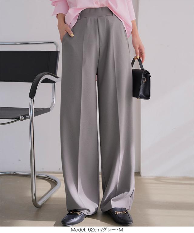 秋新作 選べるサイズ 美脚ジャージーワイドパンツ M4019 入荷済 ワイドパンツ タックワイドパンツ スラックス ワイド ボトム パンツ ハイウエスト バックゴム ウエストゴム ストレッチ 伸びる 伸縮 share_lfashion
