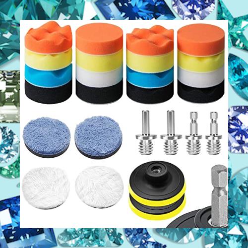 ?セット内容:16x80mm研磨スポンジパッド、2xウールパッド、2xマイクロファイバー仕上げパッド、2x吸着盤、2x六角軸アダプター、2x円柱型 M10アダプター。