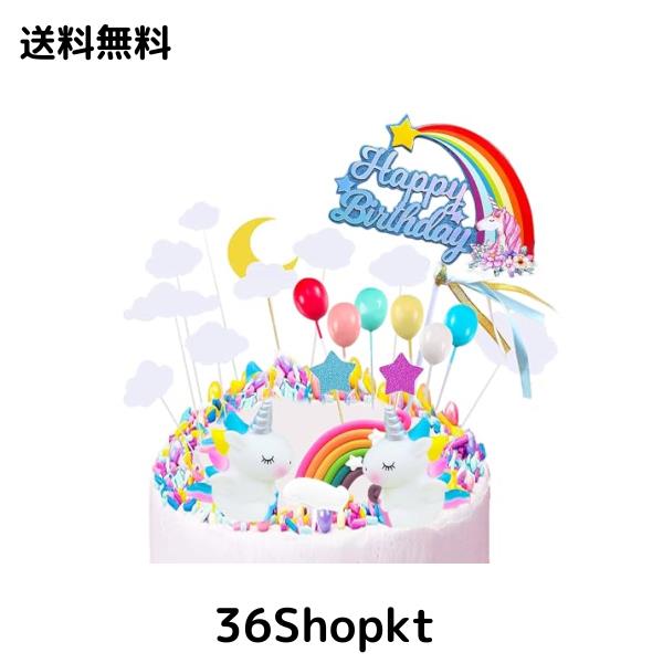 Kingsie ケーキトッパー ユニコーン 豪華 ケーキ デコレーション レインボー 虹 風船 可愛い ケーキ挿入カード 誕生日/パーティー ケーキ