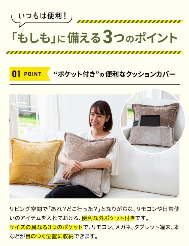 1.普段はポケット付きで便利なクッションカバー もしもの時は大容量のトートバックに!