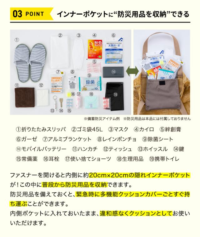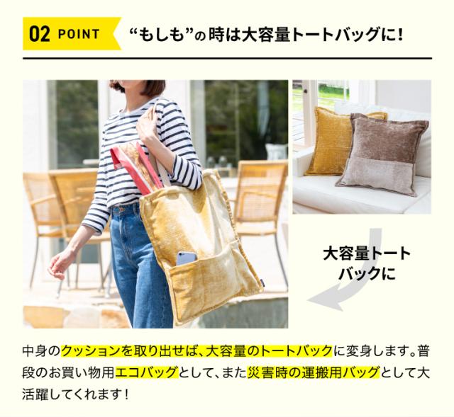 防災品を備えられる便利なクッションカバーが超大容量トートバックに