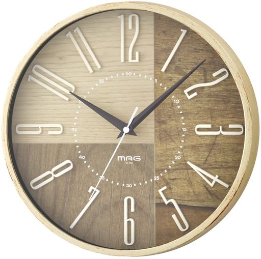 MAG(マグ) 掛け時計 壁掛け時計 電波時計 アナログ かわいい おしゃれ インテリア 北欧 木目調 ウッディ 直径29.0CM 夜間秒針停止 ナチュラル アイボリー ココア W-769 IV-Z ナチュラル