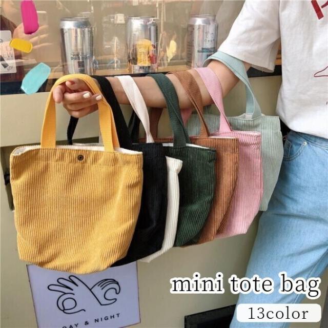ミニトートバッグ レディース メンズ カバン コーデュロイ 無地 ハンドバッグ ランチバッグ サブバッグ スクエア コンパクト