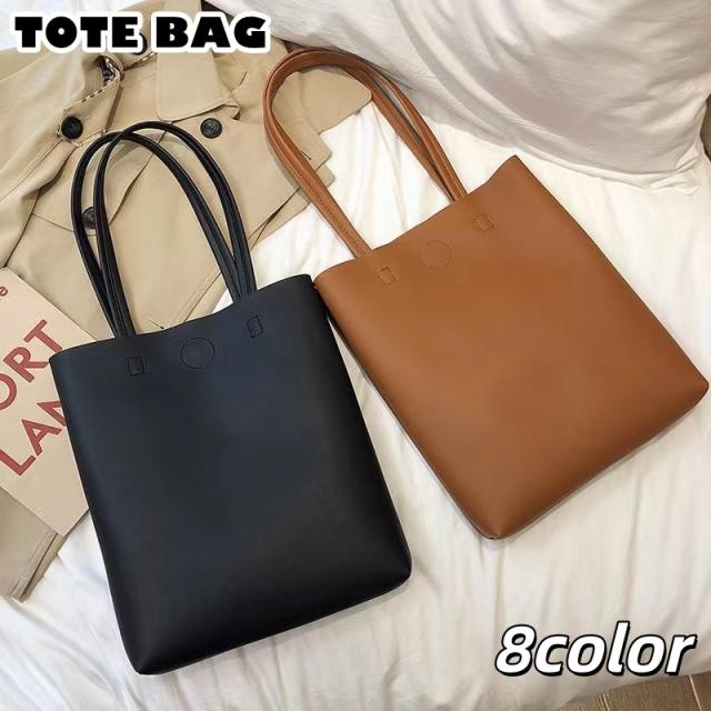 トートバッグ レディース 女性 鞄 カバン 長方形 縦長 マグネットボタン 磁石ボタン PUレザー 無地 ブラック ホワイト ベ
