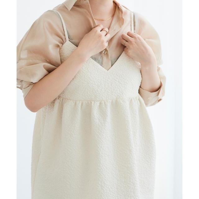 フレアシルエットにVネックのキャミデザインで抜け感と軽やかさを演出。インナーによって雰囲気が変わりコーディネートの幅が広がるアイテムです。
