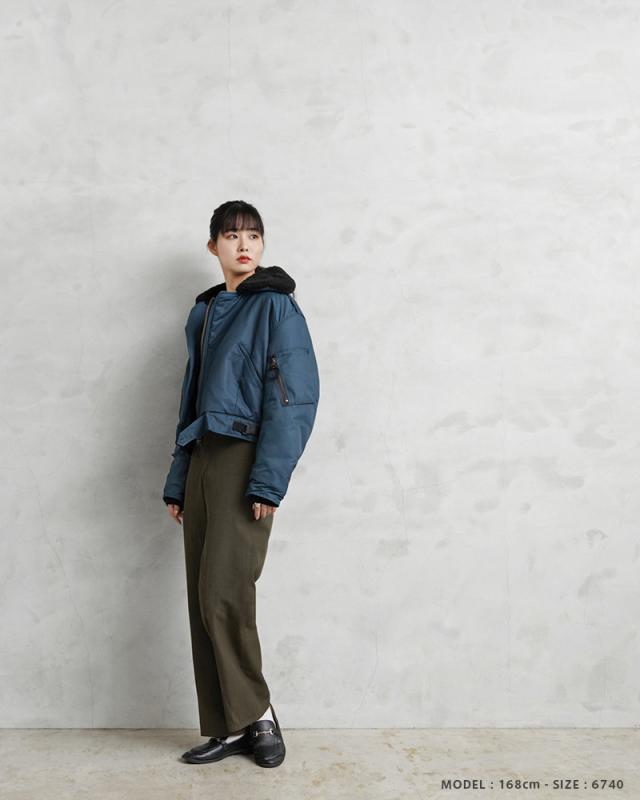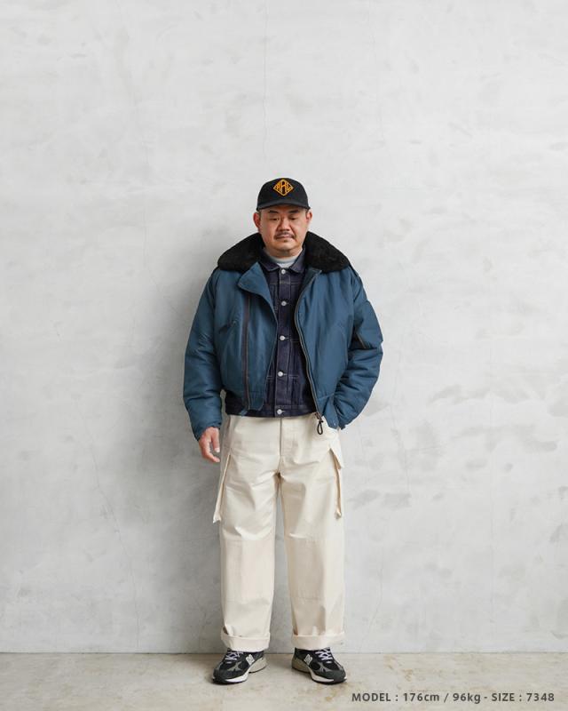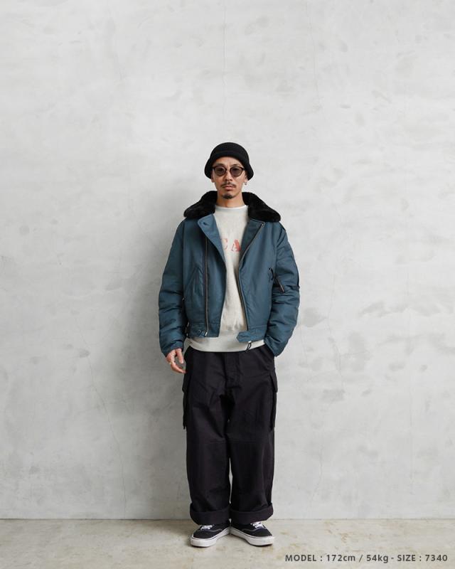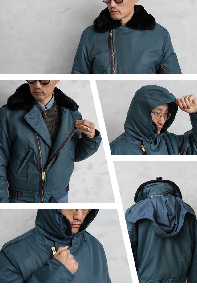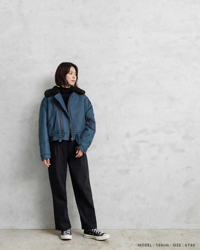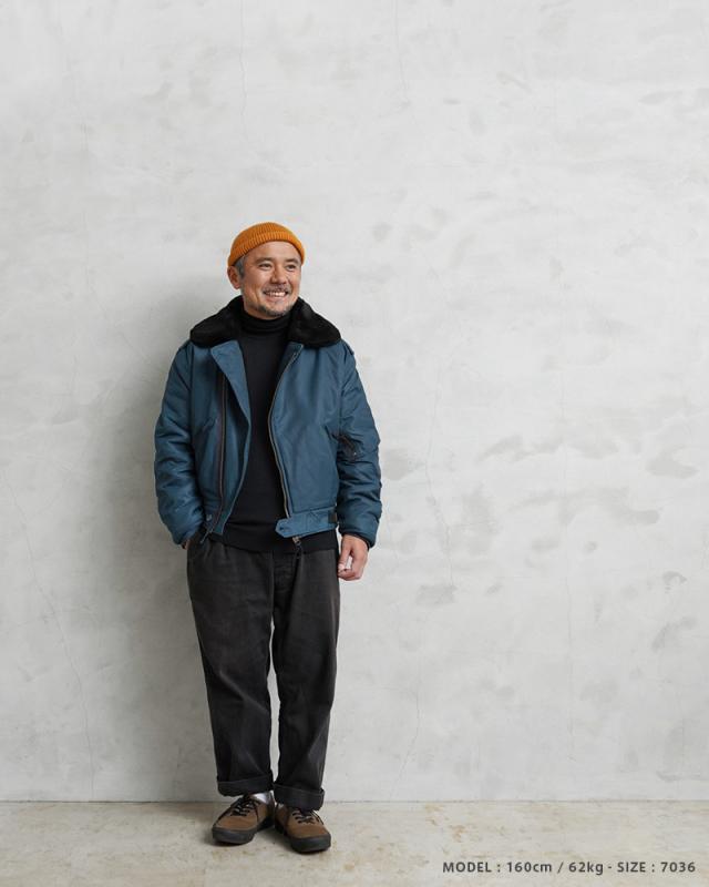 | 商品説明 | 実物 新品 デッドストック カナダ軍 ROYAL CANADIAN AIR FORCE リアルムートン アビエイター ジャケット TYPE IV AIR FORCE BLUEのご紹介です。 制式名称:JACKET,FLYING,TYPE IV VESTE D’AVIATEUR カナダ空軍ロイヤル カナディアン エアフォース(RCAF)で主に1990年代に採用された、パイロットが着用するために開発された防寒性の高い通称ボマージャケットと呼ばれる大きな襟が特徴のフライトジャケットで、カナダ空軍の「CANADIAN AIR FORCE BLUE」が上品さも感じさせる色目のアビエイタージャケットが入荷しました! 丸みのあるボア襟の素材にはリアルムートンが贅沢に使用されており、背面上部のファスナーを開けると襟の内部にドローコード付きのフードが収納されています。ダブルライダースのようにあえて中心からオフセットされたファスナーが斜めに走ったデザインで、ウインドフラップ付きなので風の侵入しにくい仕様になっています。 ナイロン、コットン50/50の絶妙な質感のシェルに、シェルとライニングの間に入る防寒性や保温性を高める目的のインターライニングには100%ウールが使用されています。袖の内側にはリブ素材のインナーカフスが備わっていますので風の侵入を防ぎます。ヘビーゾーンでの仕様を目的に製造された防寒性に優れたジャケットです。 裾にはリブの付いていないデザインなので、一般的なフライトジャケットよりもファッションに取り入れやすく、ショート丈のジャケットで、脚長効果も期待できます。フィット感を高めたい場合は、裾のサイドにベルクロアジャスター付きで調節可能、その仕様もデザインに一役買っています。 左袖にデザインされたユーティリティポケットはマチ付きの立体感のあるディテール、フロントポケットはファスナー開閉のポケットが備わっています。インナーポケットも内側の左右に設けられていますのでジャケットだけでも十分な収納を確保できます。 現代の既製品にはなかなかないようなカラーリングとカナダ軍オリジナルのデザインが素晴らしい1枚。様々なボトムスとも相性が良く、品のあるカナディアンミリタリーの名作をお楽しみいただけます。 カナダ軍のアイテムは放出自体が少ない印象ですが、カナダ空軍はさらに少なく、未使用デッドストックは更にレア!滅多にお目にかかれない入手困難で希少なネクストヴィンテージアイテムです! | ||||||||||||||||||||||||||||||||||||||||||||||||||||||||||||||||||||||