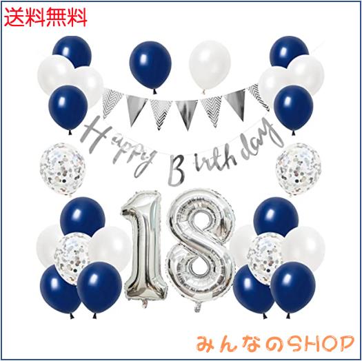 〔豪華なセット内容〕「18」数字バルーン×各1個、フラッグガーランド×1本、HAPPY BIRTHDAYガーランド×1本、紙吹雪入りバルーン×5個、ホワイトバルーン×10個、ブルーバルーン×10個、おまけ:リボン×1個、ドットシール×1枚。※商品の取り扱いは6才以上のお子様にお勧めします。ガーランドはお客様自身で糸通しをお願い致します。バルーン類は全て空気の入ってない状態でのお届けです。お届け後ご自身で膨らませてご使用下さい。