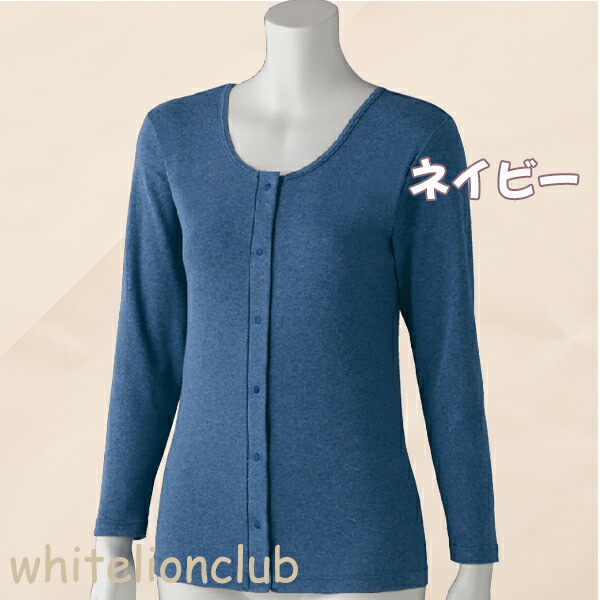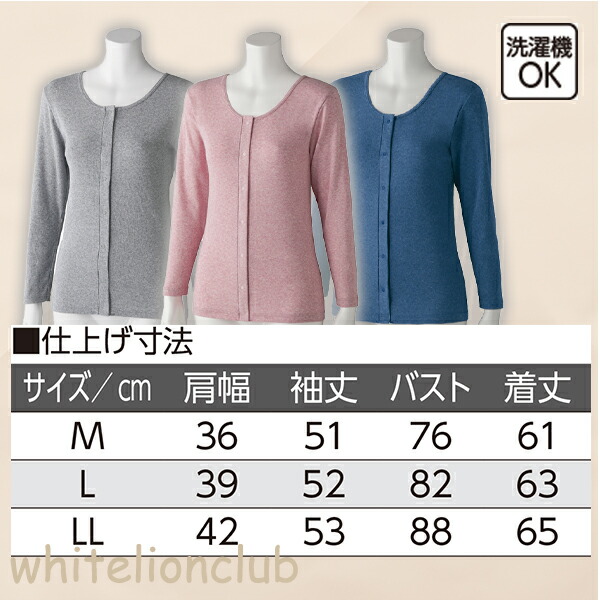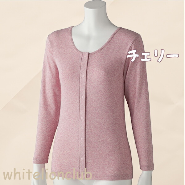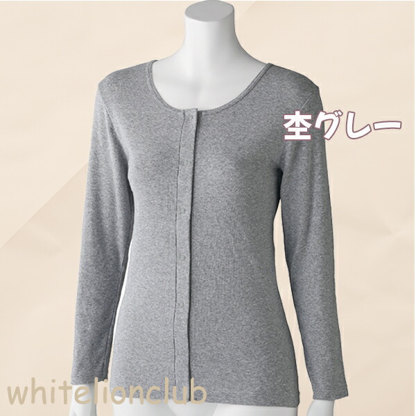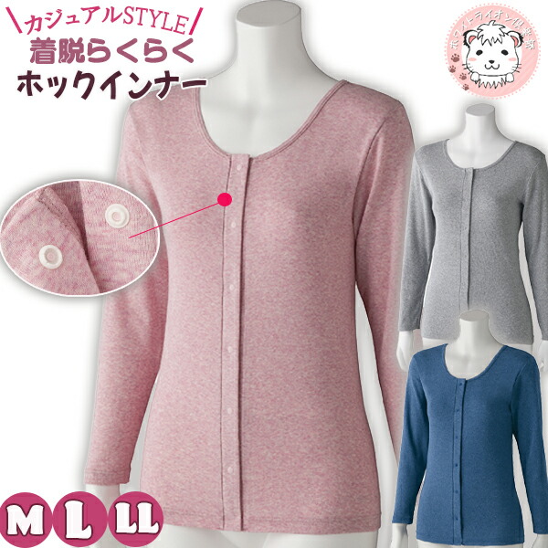 フライス杢 長袖 ホックインナー 綿100% 前開き 長袖インナー M/L/LL | 婦人用 プラスチックホック式 9分袖 肌着 下着 インナー シャツ 入院 介護 介護施設