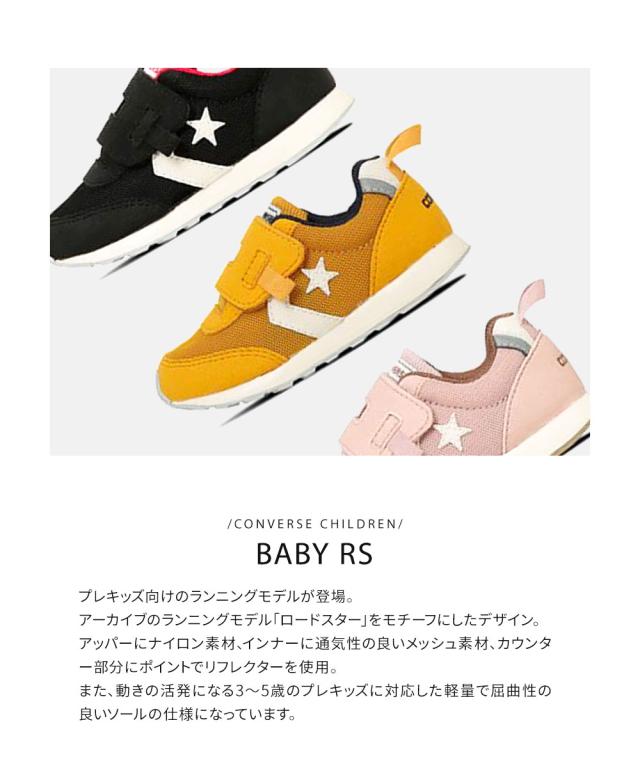 コンバース ベビーシューズ キッズ 子供靴 ベビー RS かわいい ファーストシューズ スニーカー プレキッズ 男の子 女の子 赤ちゃん ワンベルト 出産祝い 誕生日 御祝 孫 プレゼント ギフト イエロー ブラック ピンク converse BABY RS