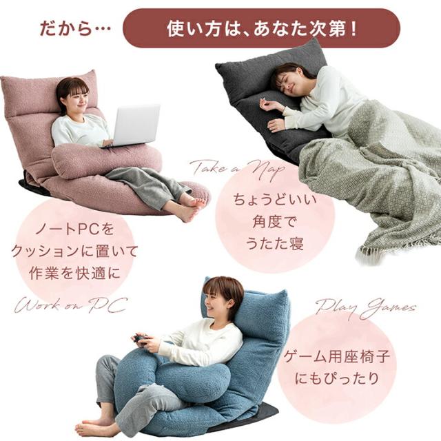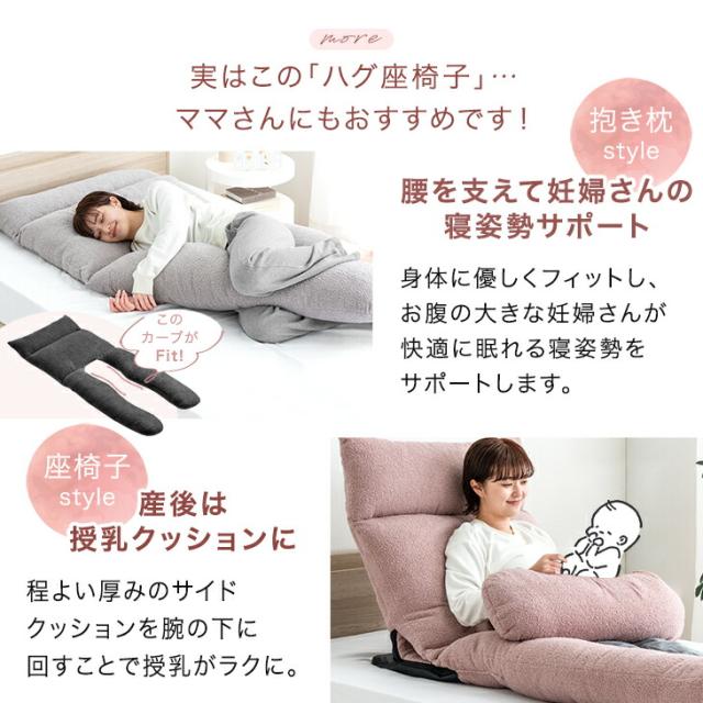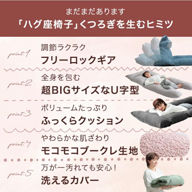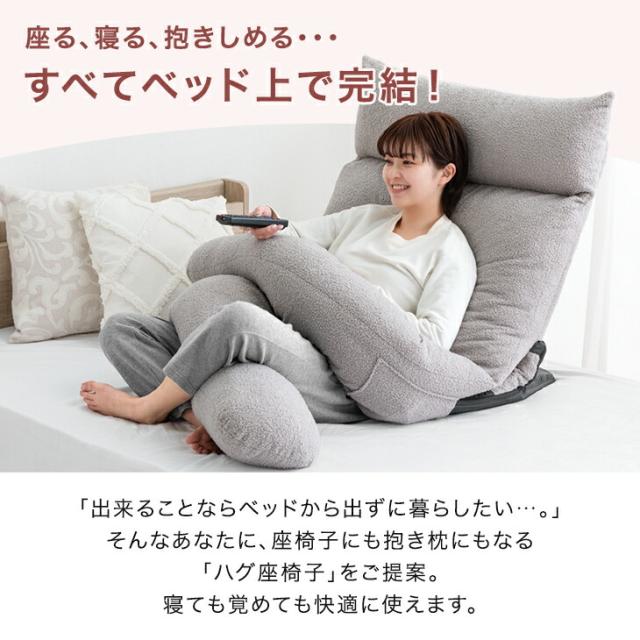 ベッドで、暮らす。ハグ座椅子 2way 抱き枕 座椅子 18段階ギア ベッド の 上 で 座る 背もたれ クッション ベッド上 1人掛け リクライニング ヘッド部分 ハイバック 肘付き 椅子 いす おしゃれ 北欧 かわいい 洗える カバー