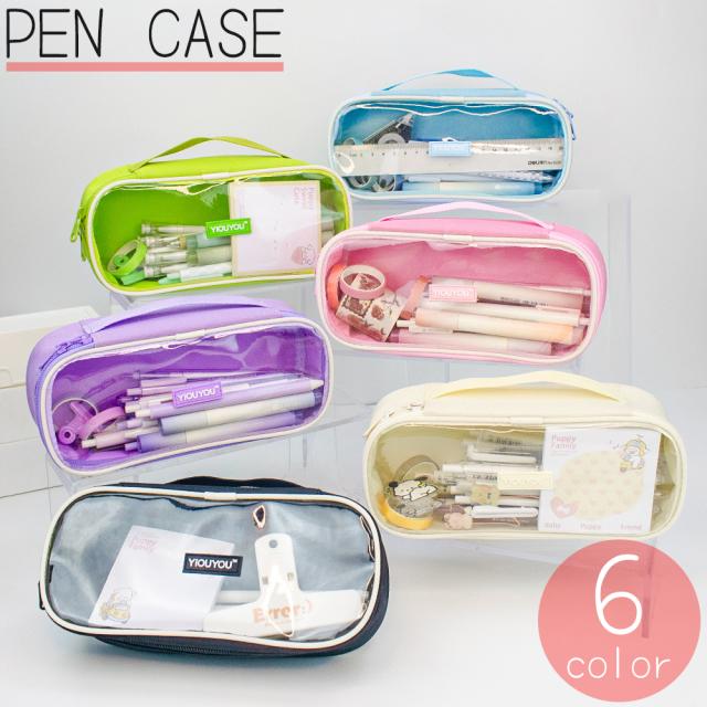 ペンケース 筆箱 女の子 男の子 子供 大人 筆入れ 筆記用具入れ 文房具入れ 持ち手 大容量 透明 クリア 中身が見える ファ