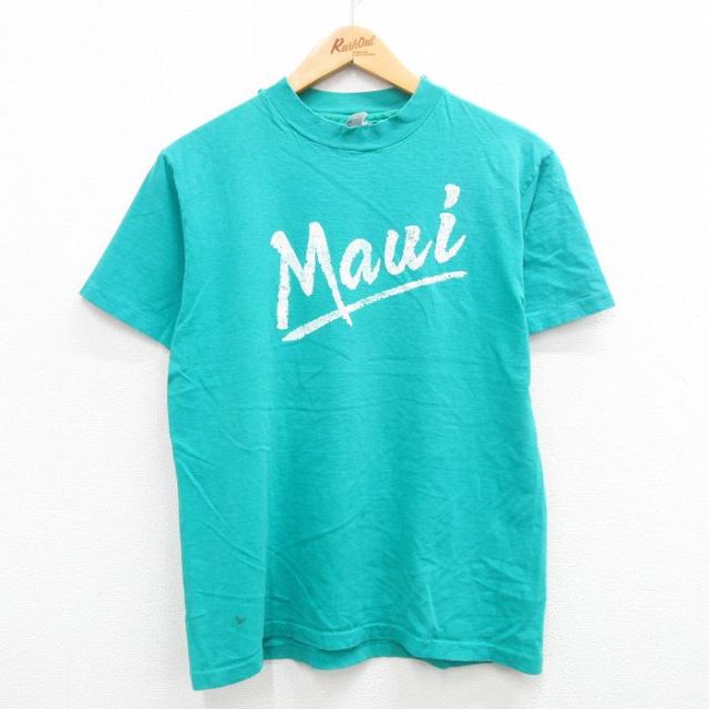 【商品名】 M★古着 ヘインズ 半袖 ビンテージ Tシャツ メンズ 90年代 90s 貝 花 クルーネック USA製 青緑