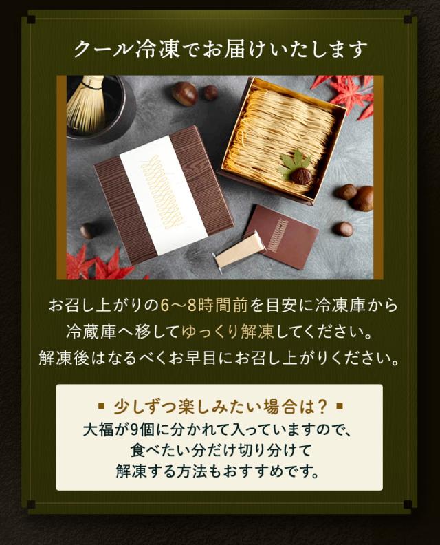 お召し上がりの6〜8時間前を目安に冷凍庫から冷蔵庫へ移してゆっくり解凍してください。