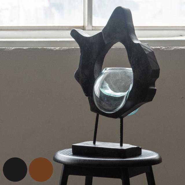 オブジェ 天然木 ガラス ( ガラスオブジェ 置物 インテリア 雑貨 アート 置き物 飾り 硝子 木 モダン 鉢 水鉢 花瓶 フラワーベース プランター おしゃれ 玄関 リビング テラリウム アクアリウム )