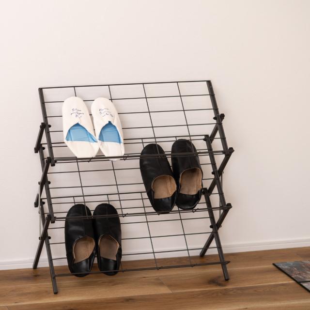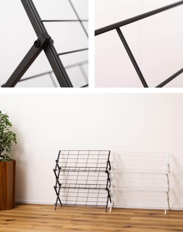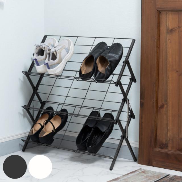 シューズラック フォールディングシューズラック スチール ( 玄関 靴 収納 下駄箱 折りたたみ ラック 見せる収納 スリッパラック コンパクト コレクションラック たためる ブラック ホワイト )