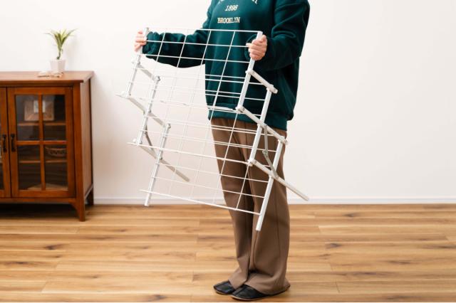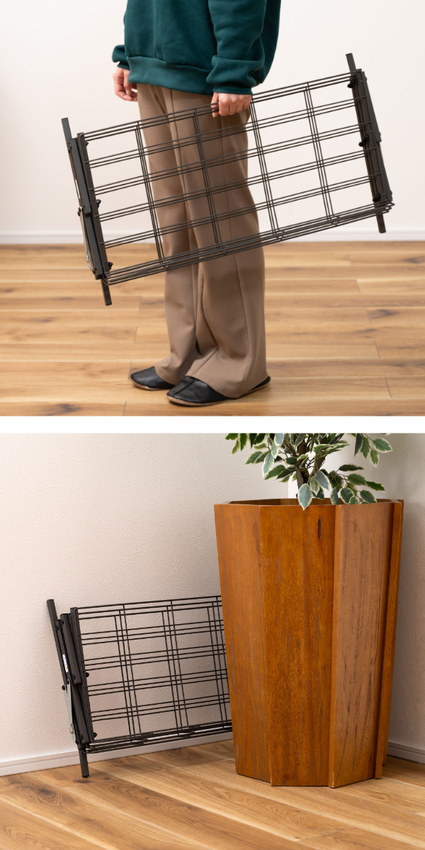 使わない時は折りたたんでコンパクトになります。持ち運びしやすく、収納にも場所を取りません。(重量:約3kg)