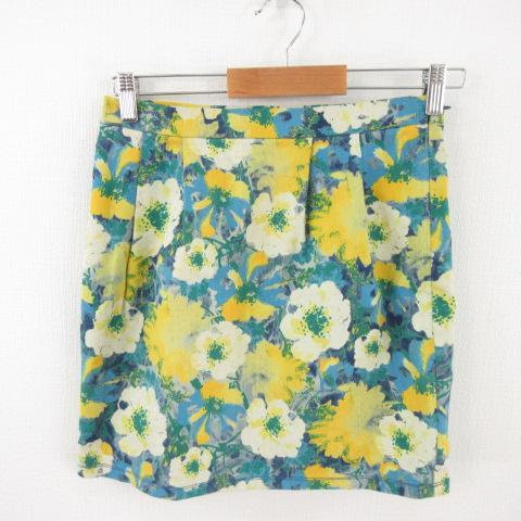 【中古】インデックス INDEX ミニスカート コクーン ストレッチ 花柄 黄 青 緑 M *A264 レディース