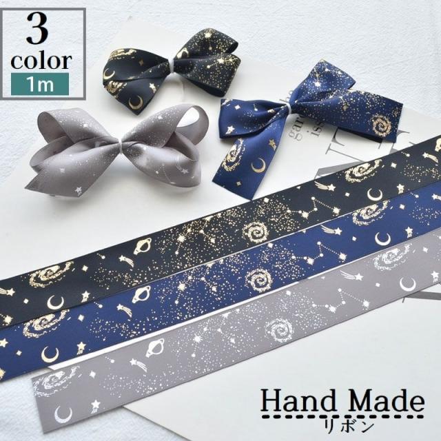 リボン 1m 裁縫材料 星空 宇宙 ハンドメイド DIY 手作り ヘアアクセサリーパーツ 手芸 クラフト 素材 飾り 装飾 可愛