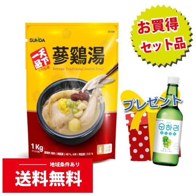 天下一品 参鶏湯 1kg+スナリ:グレープ味 プレゼント! (1885,7167) サムゲタン 焼酎 韓国料理 韓国食品 レトルト ベストマッチ料理 おいしい 果実飲料