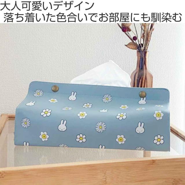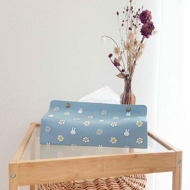 ミッフィーが白いお花に囲まれたフラワー柄。なめらかな質感が魅力のレザー風生地を使用しています。生活感にあふれるティッシュボックスも、この「tente」で覆うだけで、手軽にお部屋の雰囲気が変わります。
