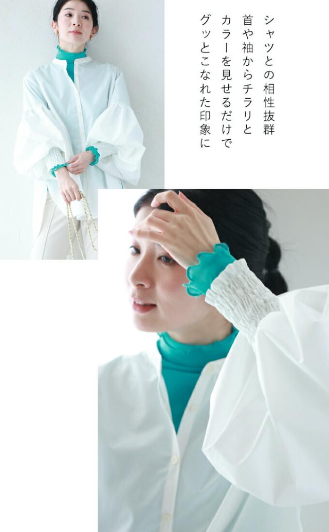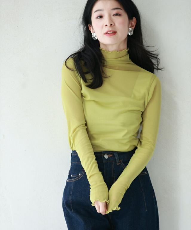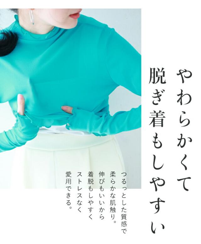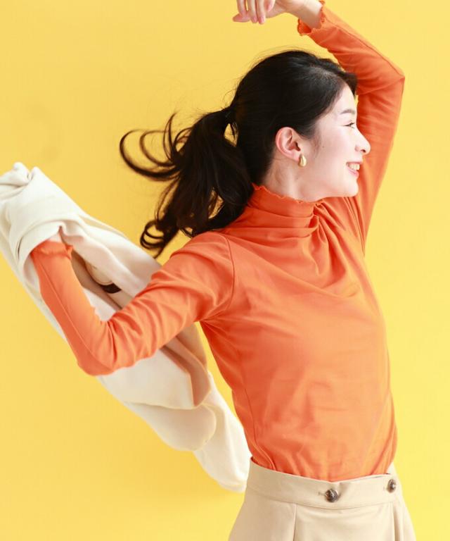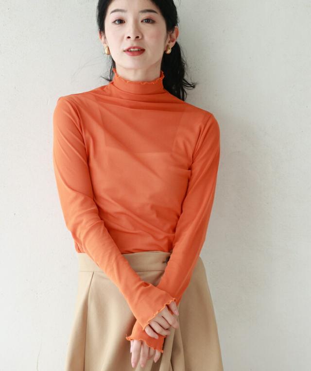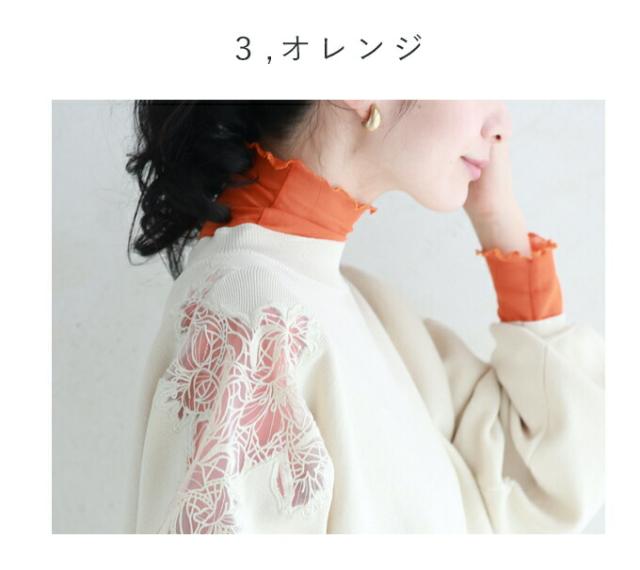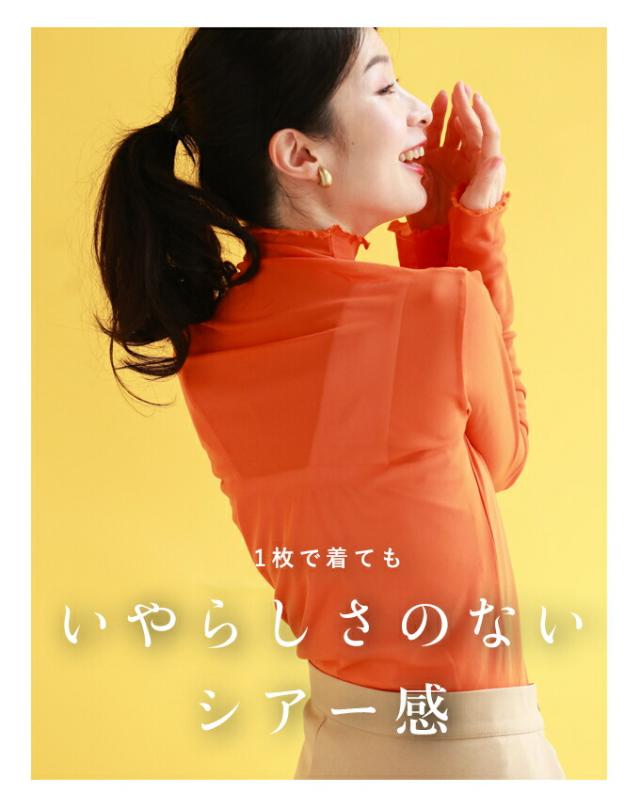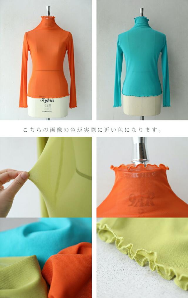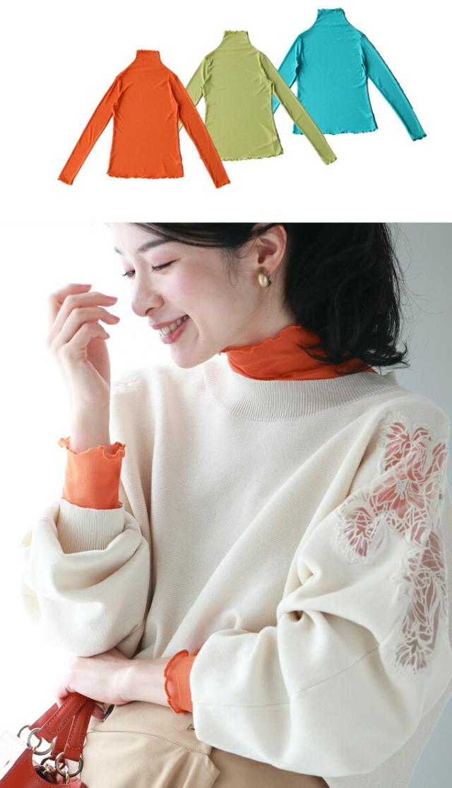 w60559ps 新作 新着 再入荷 CAWAII FRENCHPAVE フレンチパヴェ エレガント ベーシック カジュアル 可愛い かわいい カワイイ おしゃれ オシャレ お洒落 個性 個性的 定番 ベーシック 大人かわいい 大人可愛い 上品 女性らしい デザイン スタンダード ナチュラル きれいめ キレイめ シンプル フェミニン レディース レディースファッション 大人 ママ ミセス 30代 40代 50代 60代 カラーインナー トップス カットソー プルオーバー 長袖 長そで ロング袖 S M L 2L LL XL フリーサイズ フリー 小さめ 小さめサイズ小さい 小さいサイズ 低身長 痩せ ほっそり 小柄 細身 標準サイズ 大きめシルエット 大きい 大きめ ビッグシルエット ぽっちゃり F サイズ自由 メロウフリル ハイネック 春 夏 秋 春服 春物 夏 夏服 夏物 薄手 伸びる 伸縮性 オレンジ ライトグリーン ミズイロ ワンカラー ワントーン 日常着 普段着 日常使い ヘビロテ 着回し 重ね着 レイヤード ナイロン