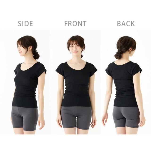 送料無料 大汗取り 脇汗 インナー フレンチ袖 レディース パッド付き 素肌ドライ 春夏 汗染み 防止 汗 対策 シャツ 綿 汗とり パット付き 吸汗速乾 M9472P-E