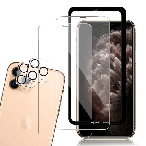 QRIVP ガラスフィルム IPHONE 11 PRO ガラスフィルム 【2+2枚セット ガイド枠付き】日本旭硝子素材製 IPHONE 11 PRO 保護フィルム ガラスフィルム 2枚 + カメラフィルム 2枚 強化ガラス アイフォン 11 プロ