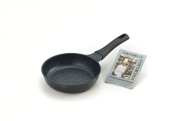 軽くて丈夫なダイキャスト製。側面は薄く、口元と底面は厚く変形しにくい造りになっています。内面はフッ素加工を施し、お手入れがしやすい!全て“たいめいけん”ミニレシピ付き。