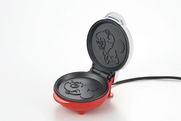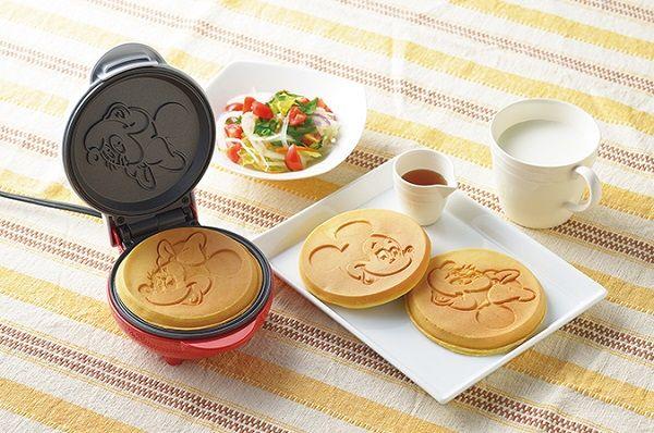 パンケーキメーカー。焼き上がりにミッキーとミニーのかわいい顔の焼き印が付きます。