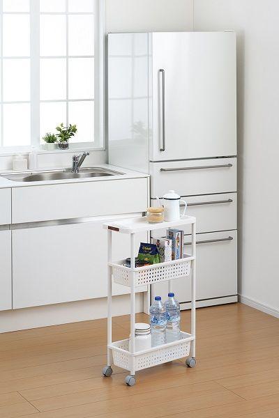 キャスター付きで動かしやすい。隙間収納キッチンワゴン。