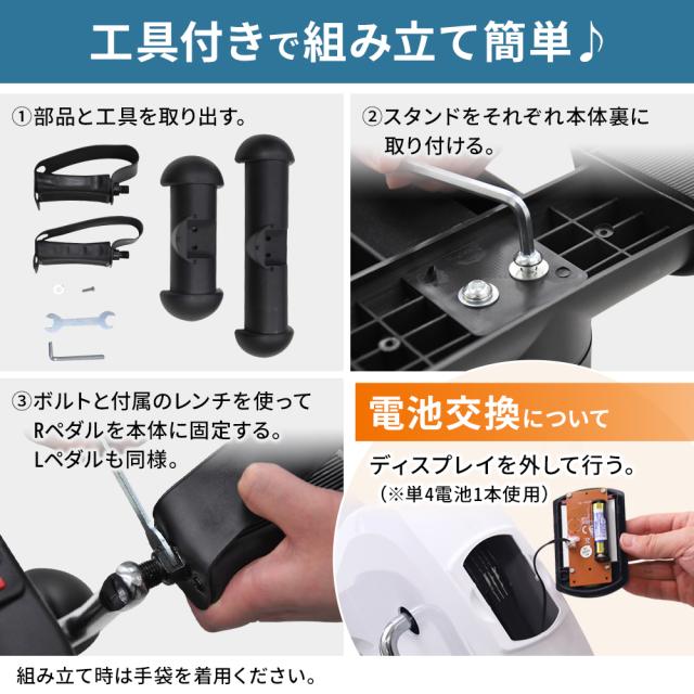 - 組立は説明書?を見ながらまぁ、短時間でできました。 パネル操作は、日本語説明がない為断念。漕げればいいか。 滑り止めマットがあれば、尚良しです。