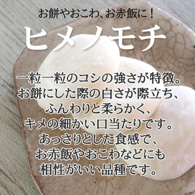 山形県産 もち米 【ヒメノモチ】一粒一粒のコシの強さが特徴。お餅にした際の白さが際立ち、ふんわりと柔らかく、キメの細かい口当たりです。あっさりとした食感で、お赤飯やおこわなどにも相性がいい品種です。