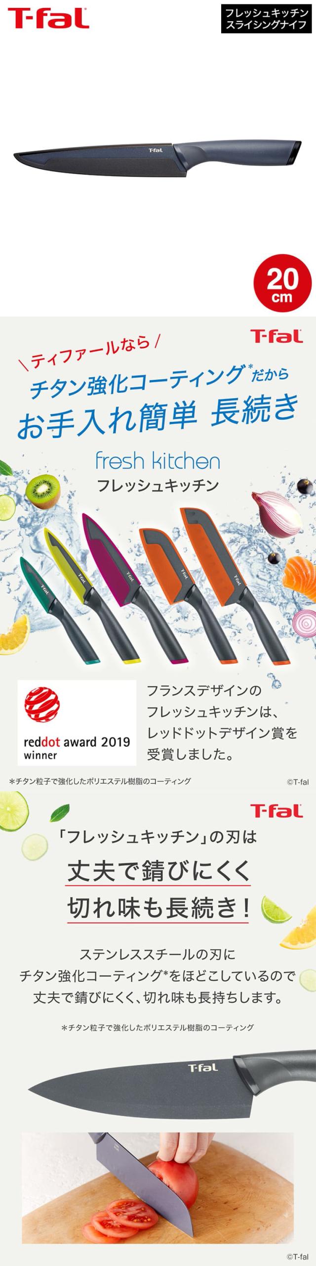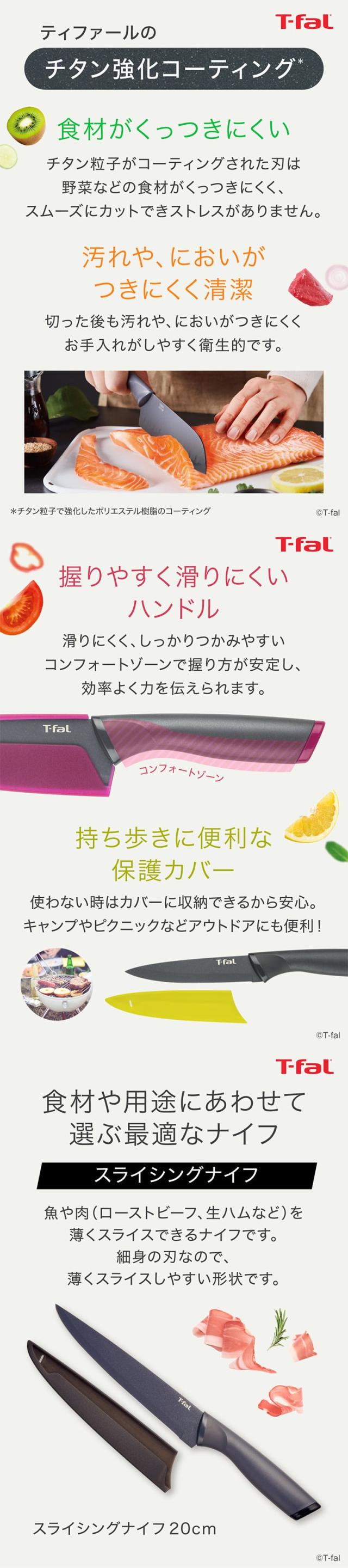 ティファール T-fal キッチンツール フレッシュキッチン スライシングナイフ 20cm K13412 包丁 ナイフ キッチンナイフ 丈夫 長持ち 錆びにくい さびにくい カバー付 アウトドア キャンプ 調理器具 台所用品