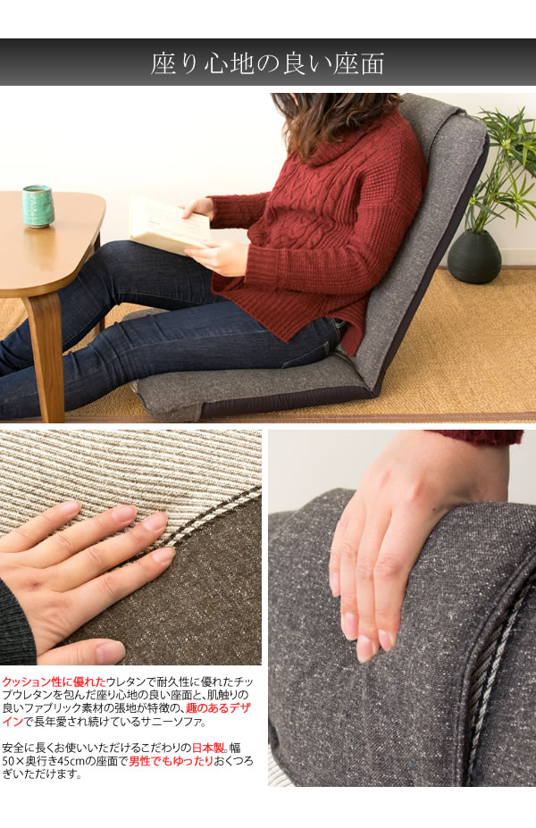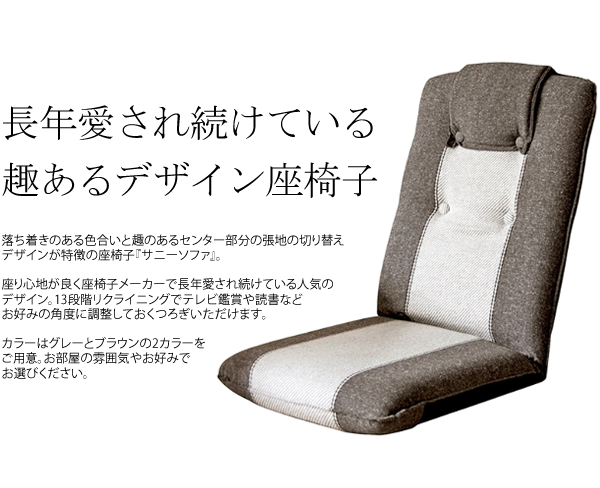 座り心地が良く座椅子メーカーで長年愛され続けている人気のデザイン。13段階リクライニングでテレビ鑑賞や読書などお好みの角度に調整しておくつろぎいただけます。