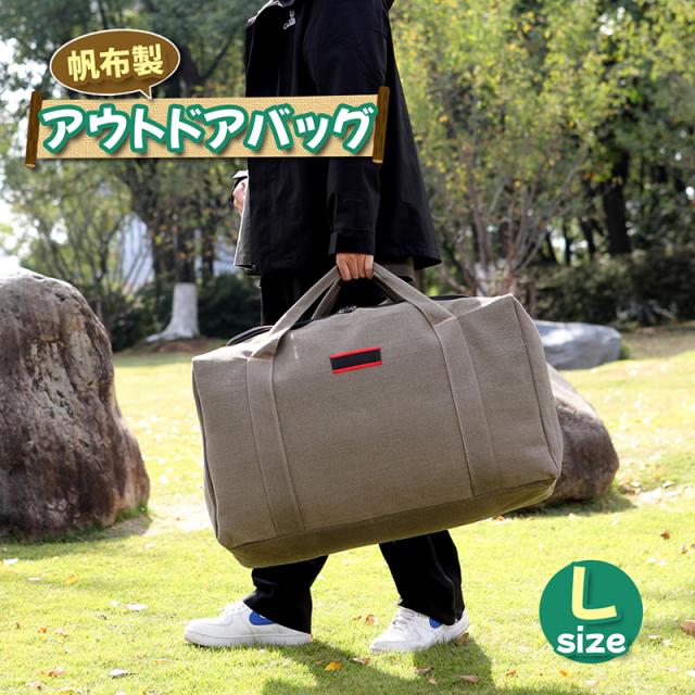 帆布製アウトドアバッグ 【Lサイズ】 キャンプ 収納バッグ大容量 キャンプ用品 ギアケース ソフトコンテナ ボストンバッグ アウトドア 旅行 送料無料
