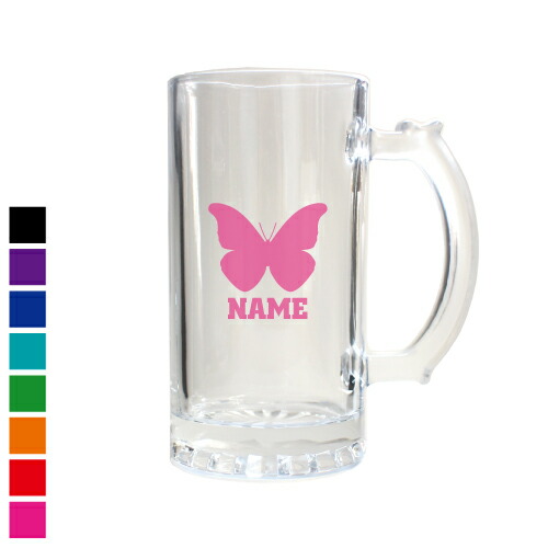 「チョウ」名入れビアマグ 名入れジョッキ 中ジョッキ 生ビール マイジョッキ ビアグラス タンブラー お祝い ギフト ビアジョッキ 【cb】昆虫